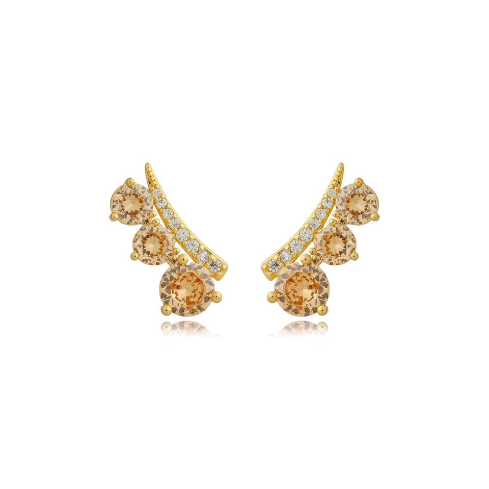 Brinco ear cuff banho de ouro com micro zircônias cravejadas na cor branco (cristal) e zircônias na cor topázio.