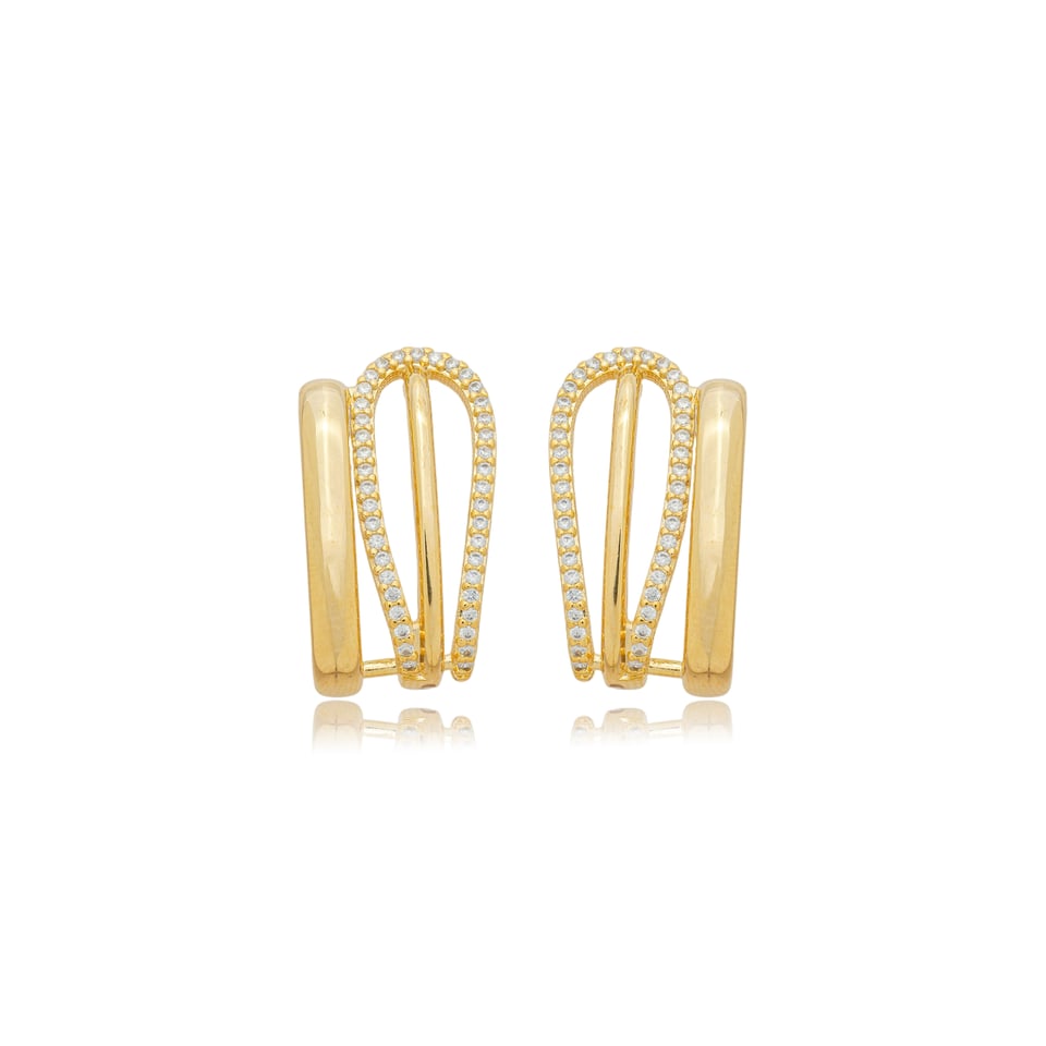 Brinco ear hook banhado a ouro com micro zircônias cravejadas na cor branco (cristal).