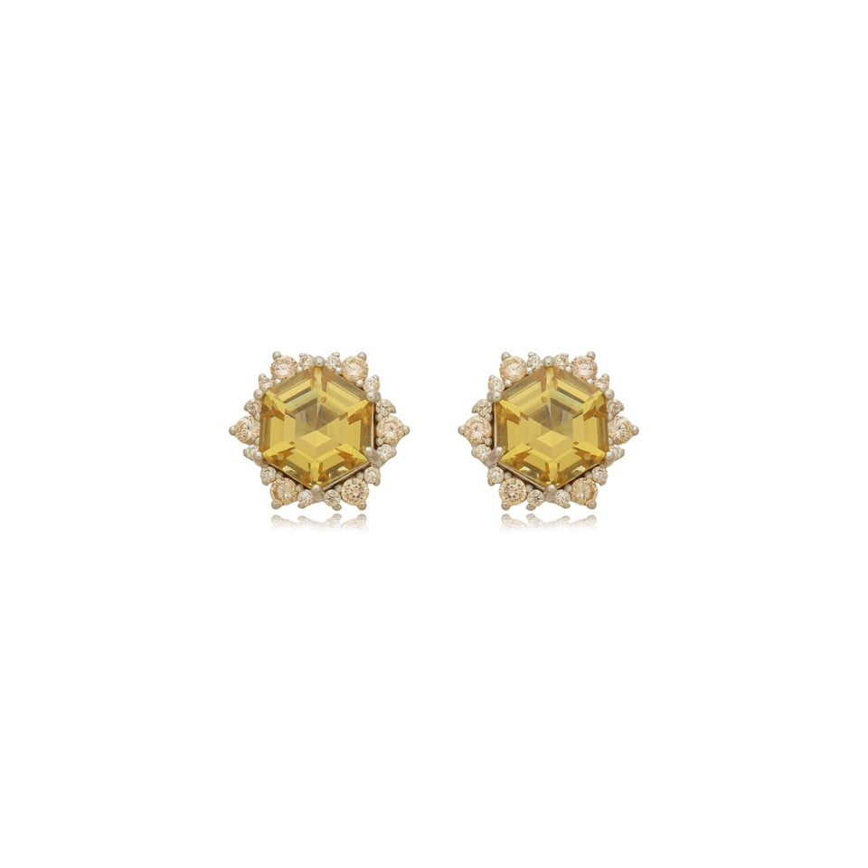 Brinco prata 925 com aplicação de cristal na cor amarelo e cravação de zircônias na cor branco (cristal).