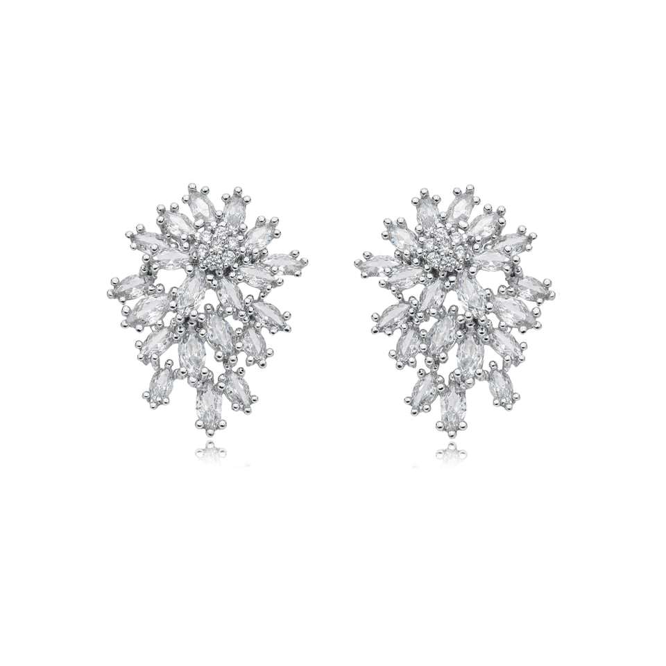 Brinco banho de ródio com cravação de zircônias na cor branco (cristal).