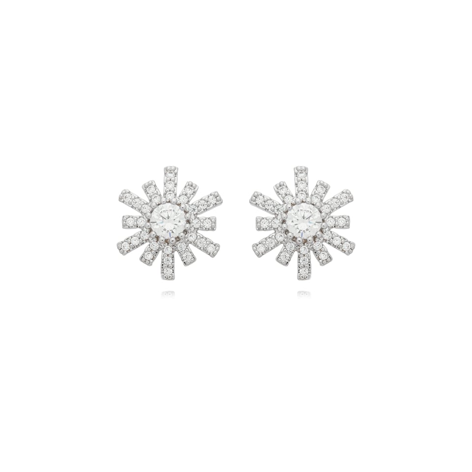 Brinco banho de ródio com micro zircônias cravejadas na cor branco (cristal).