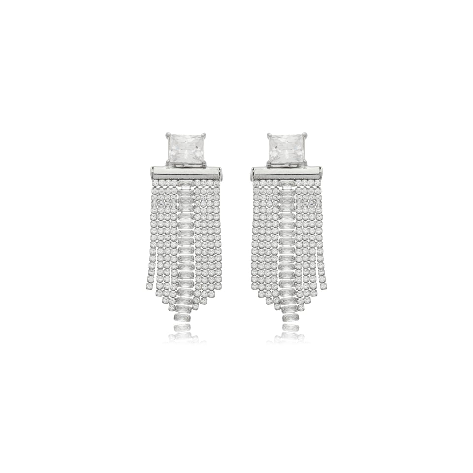 Brinco banho de ródio com cravação de zircônias na cor branco (cristal).