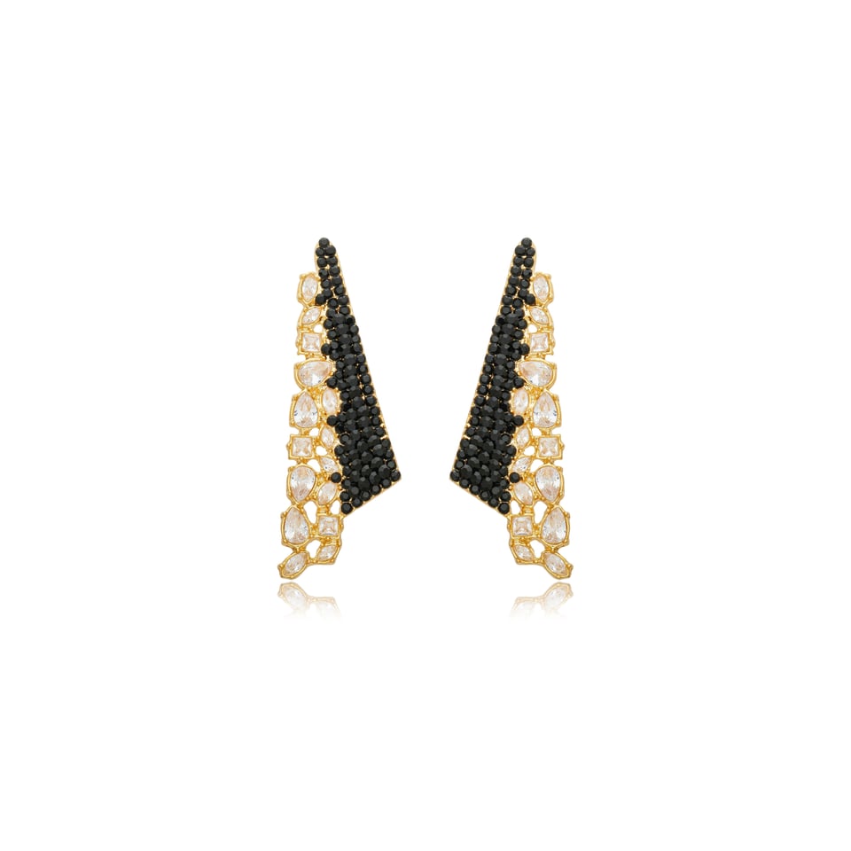 Brinco banho de ouro com aplicações de cristais nas cores branco (cristal) e preto.
