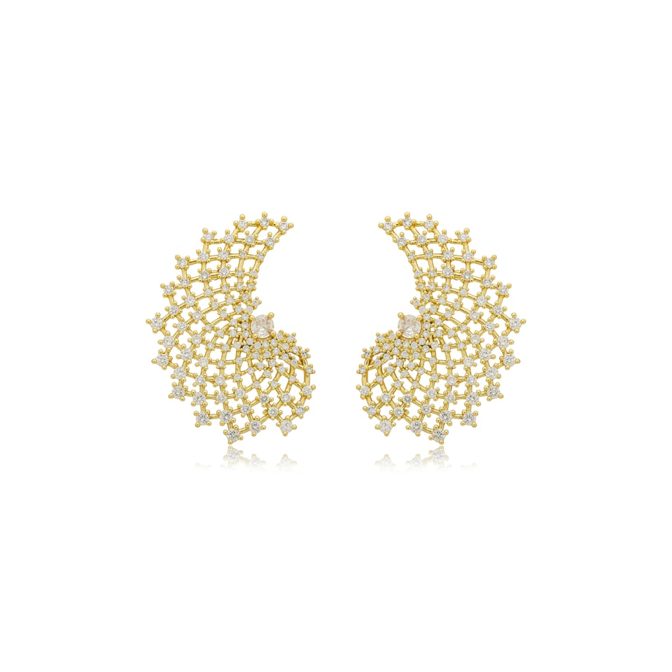 Brinco banho de ouro com cravação de micro zircônias na cor branco (cristal).