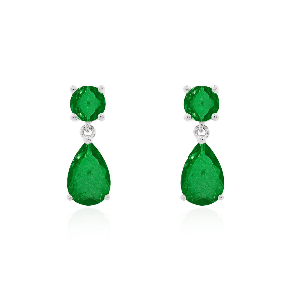 Brinco de prata 925 com banho de ródio e aplicação de cristais na cor esmeralda fusion.