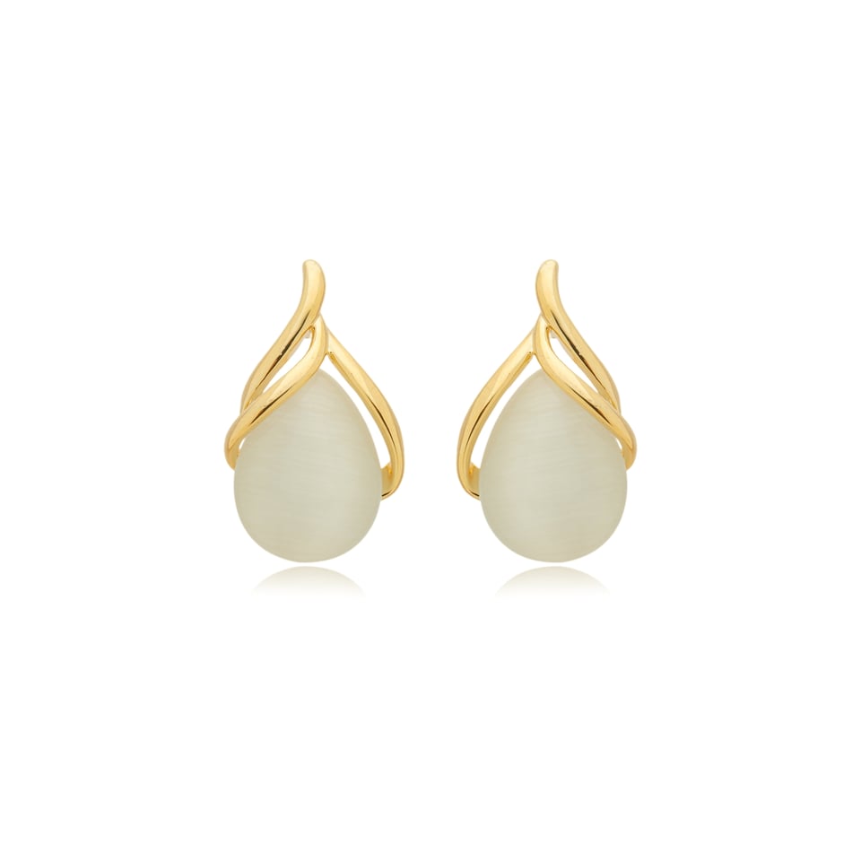 Brinco banho de ouro com aplicação de cristal olho de gato.