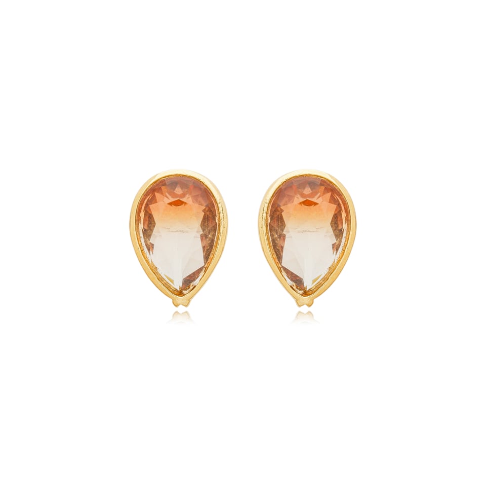 Brinco banho de ouro com cristal em gota invertida na cor topázio.