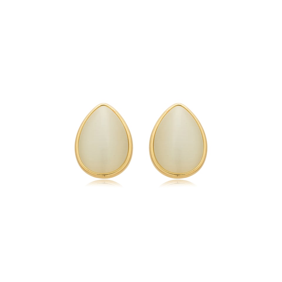 Brinco banho de ouro com aplicação de pedra olho de gato.