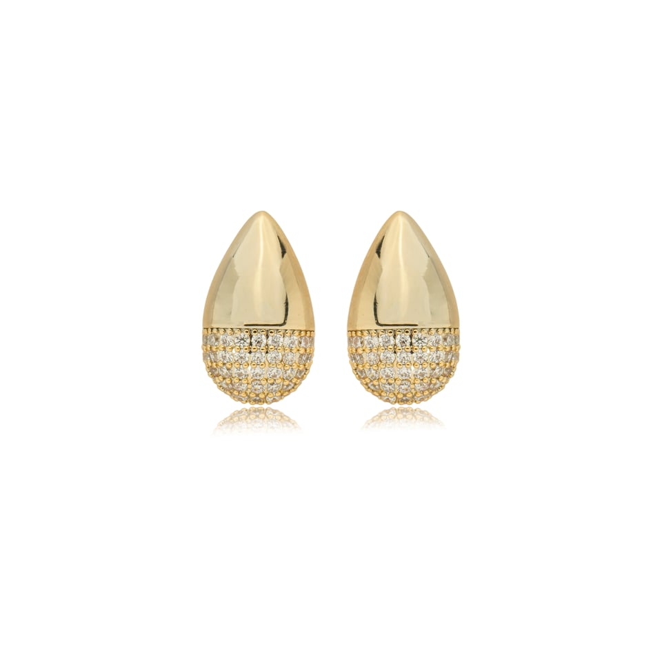 Brinco banho de ouro com design de gota e micro zircônias cravejadas na cor branco (cristal).