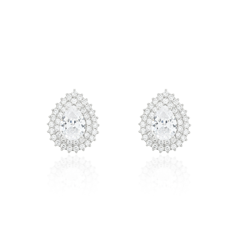 Brinco de prata 925 com banho de ródio e zircônias cravejadas na cor branco (cristal).