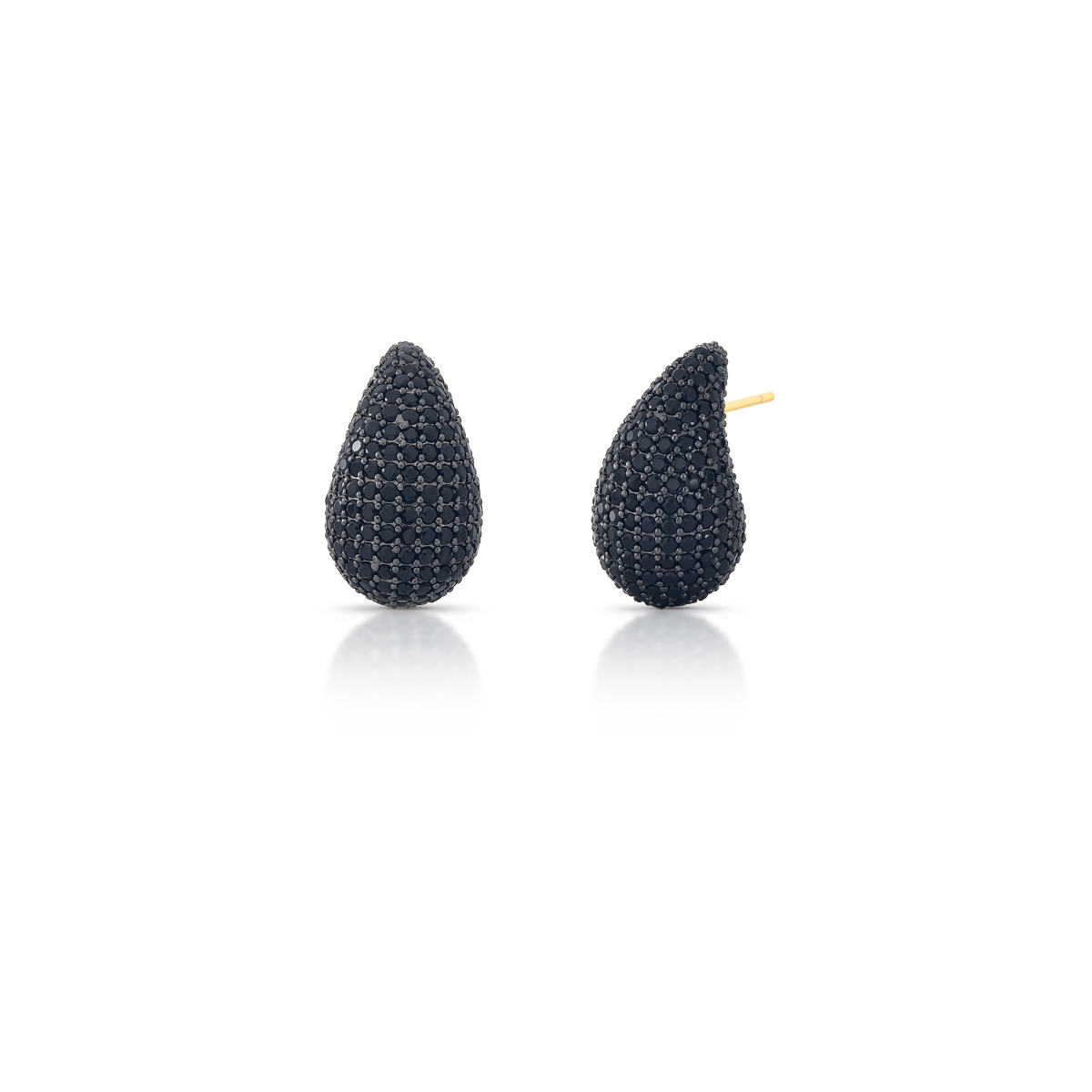 Brinco banho de ouro em formato de gota abaulada com micro zircônias cravejadas na cor preto, trazendo um brilho delicado que ilumina o rosto. Seu design elegante e sofisticado adiciona um toque especial a qualquer look, sendo perfeito para ocasiões que pedem um charme extra.