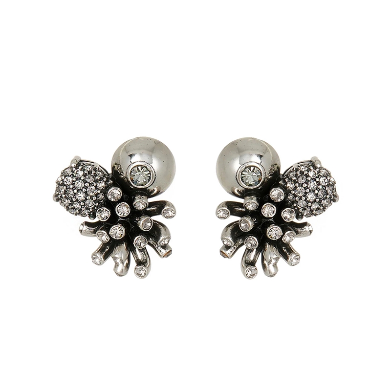 Brinco banho de prata boho com cravação de cristais na cor branco (cristal).