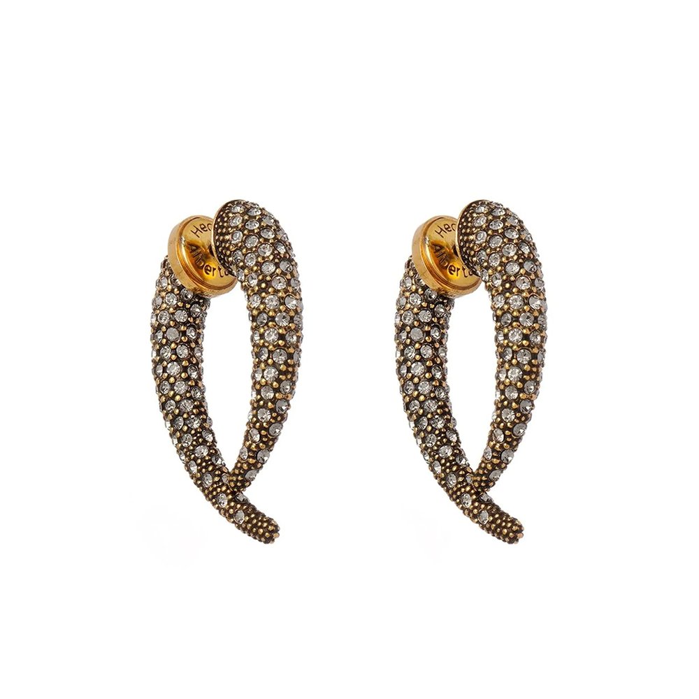 Brinco banho de ouro vintage com duas garras cobertas de strass black diamond; que criam a ilusão de atravessar o lóbulo da orelha.