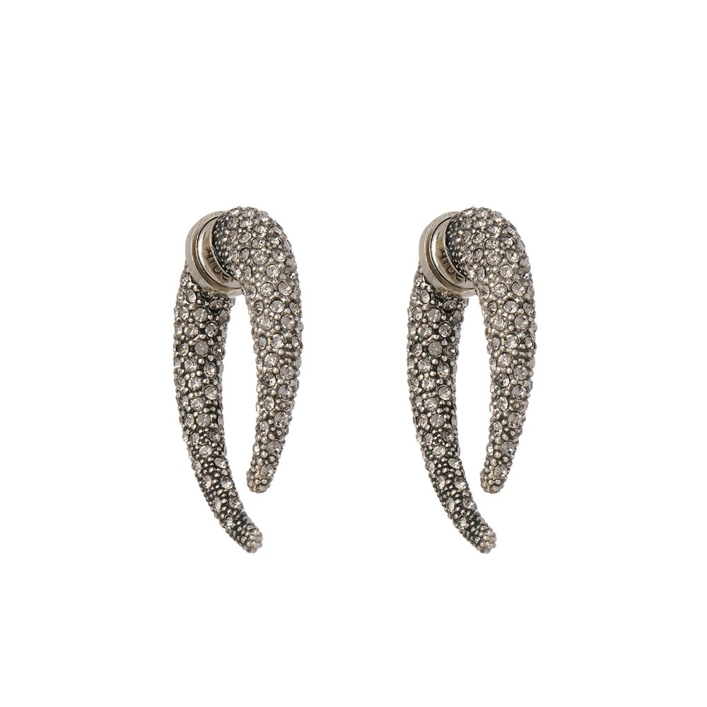 Brinco banho de prata boho com duas garras cobertas de strass black diamond; que criam a ilusão de atravessar o lóbulo da orelha.