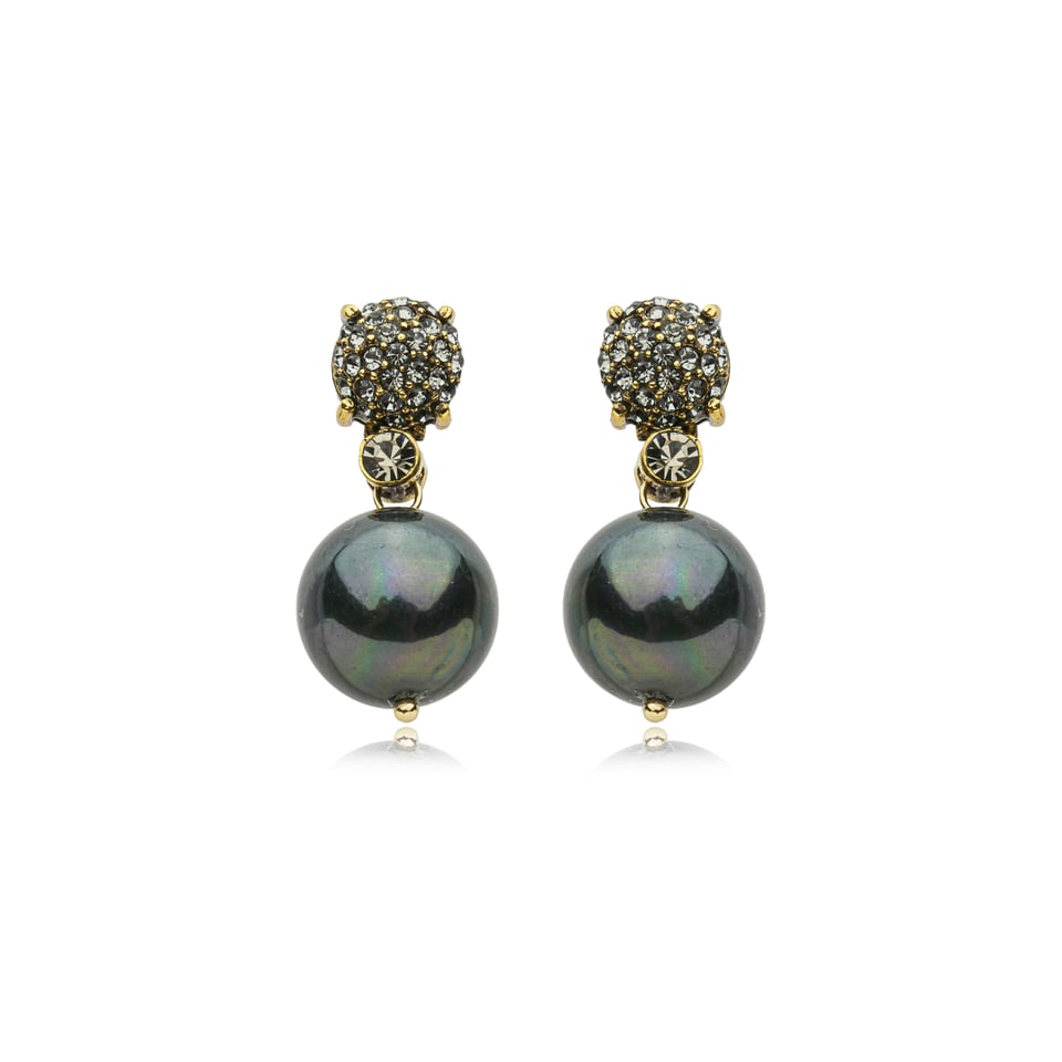Brinco banho de ouro vintage com cravação de cristais tchecos black diamond e pérola negra.