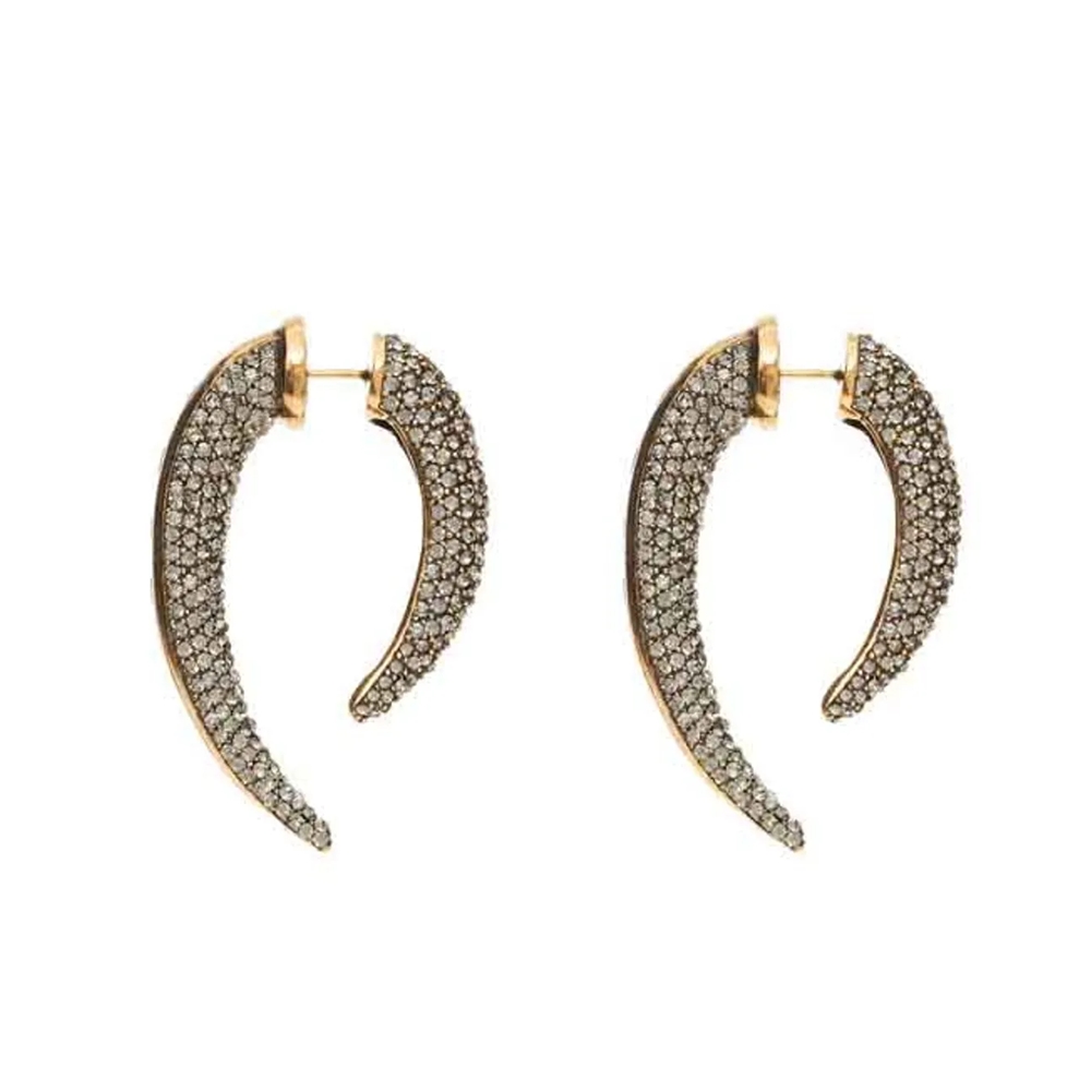 Brinco banho de ouro vintage com duas garras cobertas de 856 cristais Black Diamond.