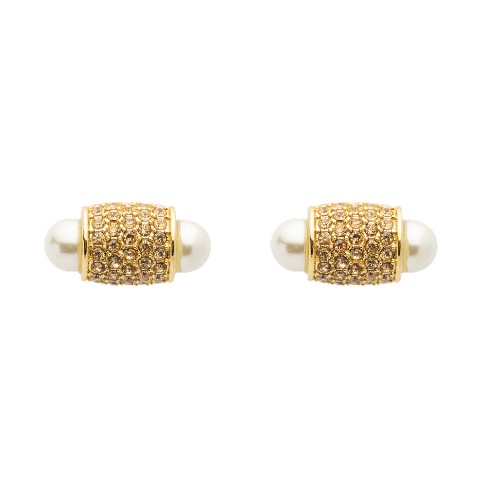 Brinco com design exclusivo em metal nobre, requintado banho ouro 18K, entremeio cravado com cristais tchecos light col, pérolas, aplicação de verniz italiano garantindo durabilidade e brilho inigualáveis. Com selo LR Níquel Free, que reduz alergias e oferece elegância e conforto em cada detalhe.