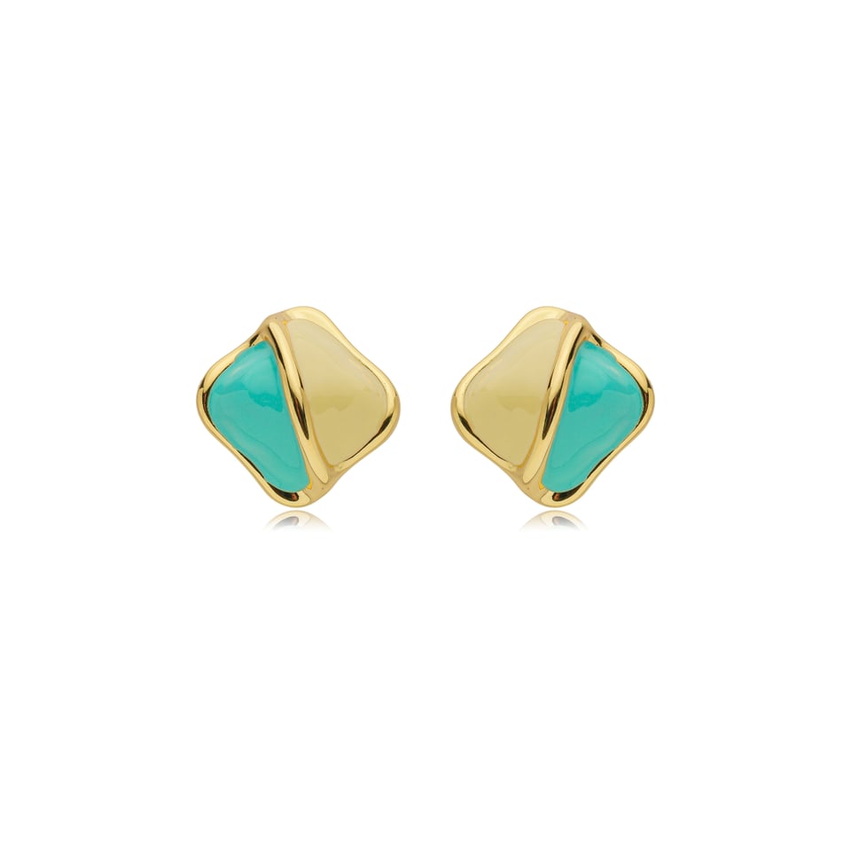 Brinco banho de ouro com detalhe esmaltado nas cores amarelo e verde.