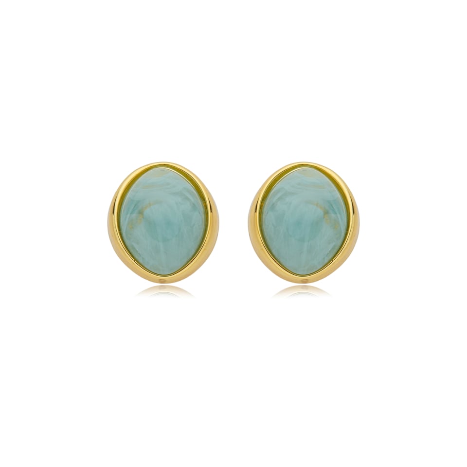 Brinco Mariana Amaral oval resina azul ouro semijoia