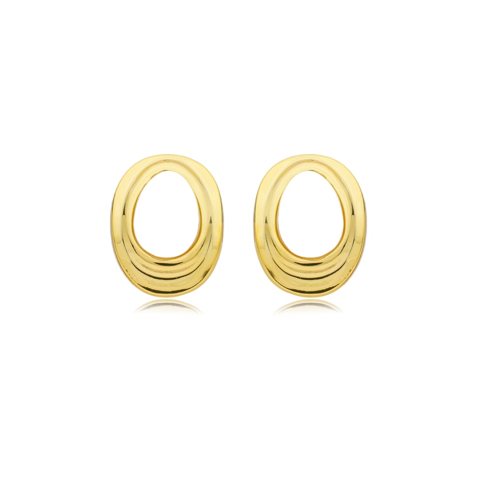Brinco banho de ouro com design oval e resina em gota perolada.