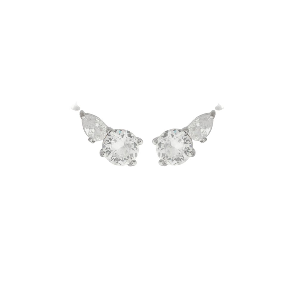 Brinco mini ear cuff banho de ródio com cravação de zircônias na cor branco (cristal).