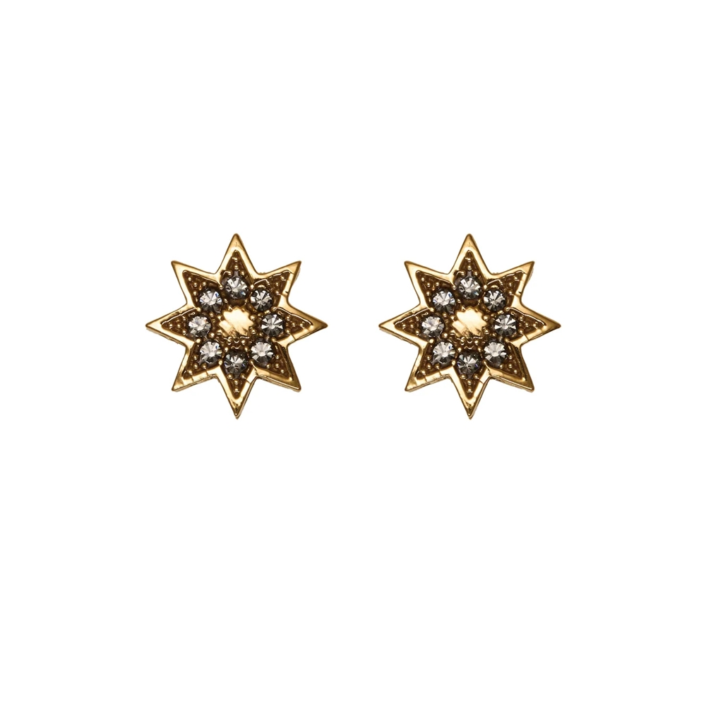Com design moderno e toque de sofisticação, o Brinco Morena Canela Estrela é produzido em latão com banho ouro e aplicação de strass Oktant Premium Swarovski na sofisticada cor Black Diamond que reflete a luz com brilho impecável.