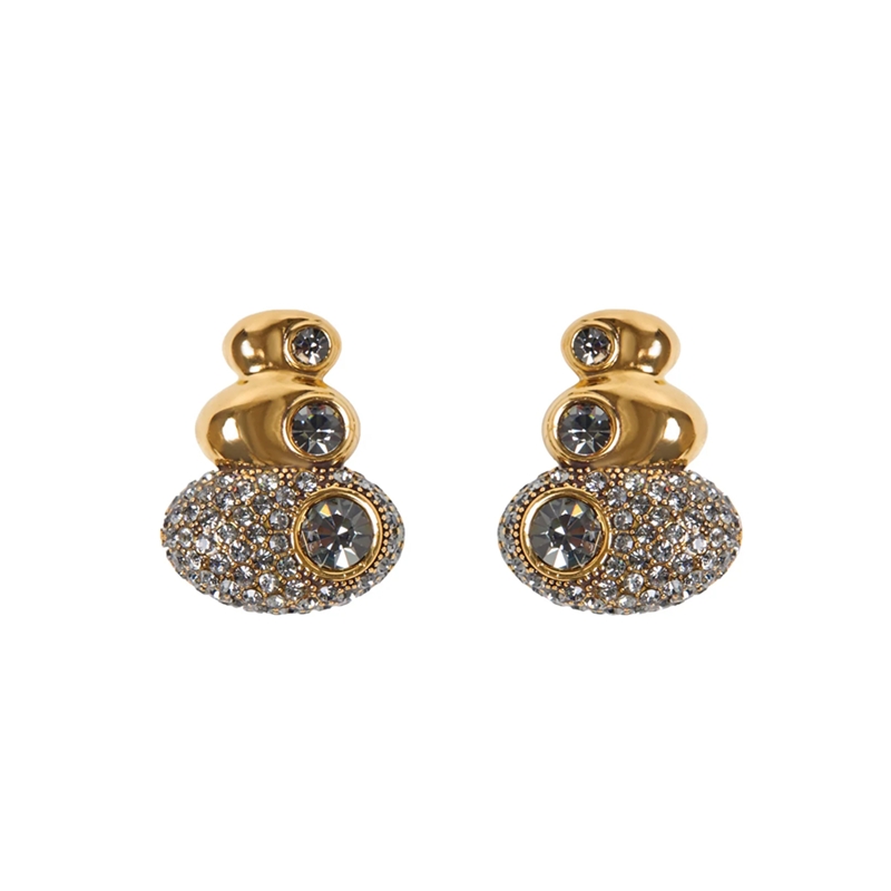 Brinco Morena Canela com design oval em camadas, desenvolvido em metal com banho de ouro, trazendo elegância e sofisticação em cada detalhe. A peça conta com aplicação de strass cravejados Oktant Premium Swarovski na cor Black Diamond, proporcionando brilho intenso e acabamento refinado. Versátil e atemporal, é ideal para compor desde produções do dia a dia até looks mais elaborados, agregando charme e personalidade ao visual.