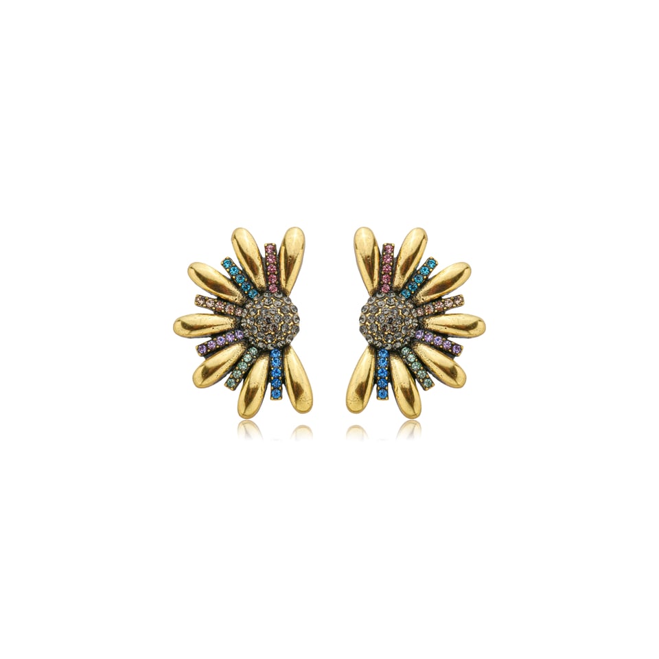 O Brinco Nino Bran Flor traz banho de ouro vintage e micro zircônias coloridas, combinando brilho e sofisticação em um design delicado. Uma semijoia perfeita para iluminar o visual com um toque feminino e atemporal.
