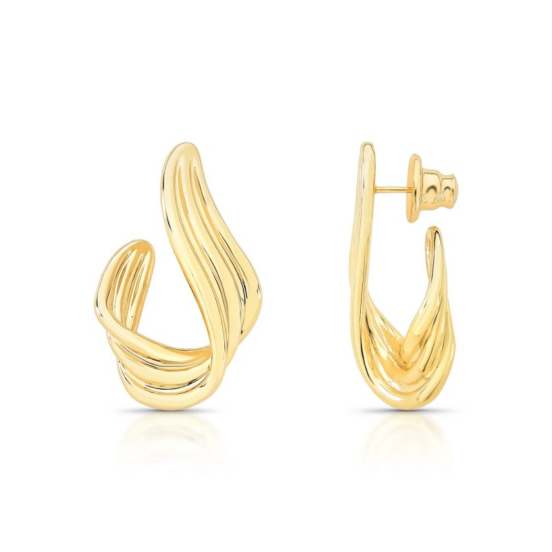 Brinco banho de ouro com design de ondas.