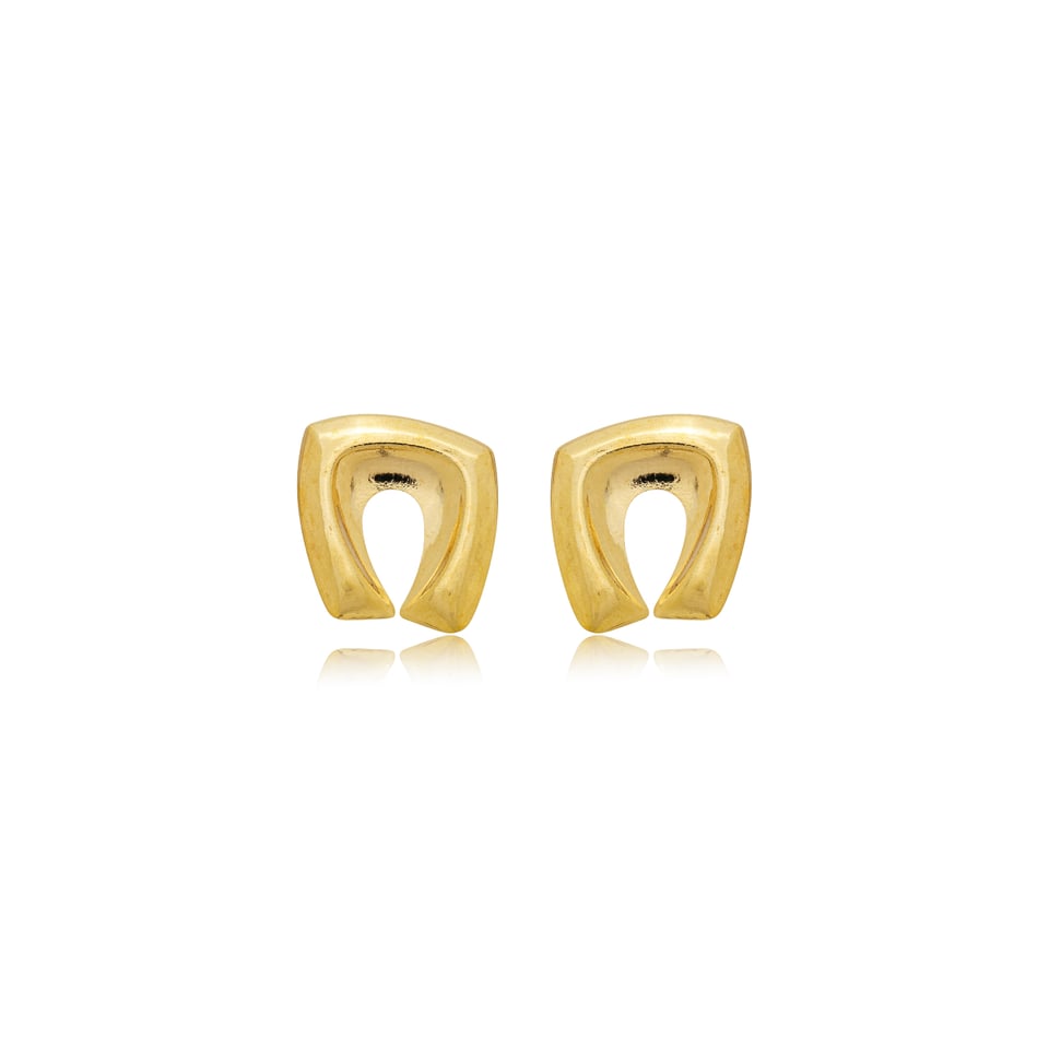 Brinco banhado a ouro com design orgânico no metal liso polido.