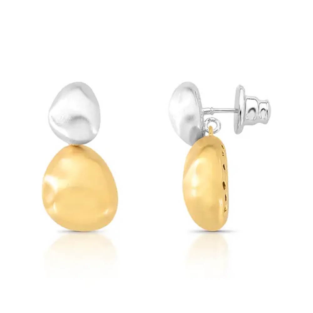 Brinco Orgânico Ouro e Ródio Fosco é uma semijoia que representa o equilíbrio perfeito entre textura, contraste e design contemporâneo. Produzido em mix de banhos, ele une a elegância do dourado com a sofisticação do prateado, resultando em uma composição moderna e versátil. Seu design orgânico e volumoso reflete a fluidez das formas naturais, transmitindo um ar artístico e sofisticado. As formas assimétricas sobrepostas criam um contraste visual dinâmico, enquanto o tamanho médio garante presença sem abrir mão da leveza e do conforto no uso.