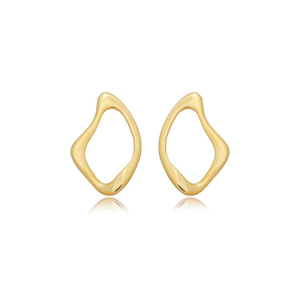 Brinco banhado a ouro com design orgânico no metal liso polido.