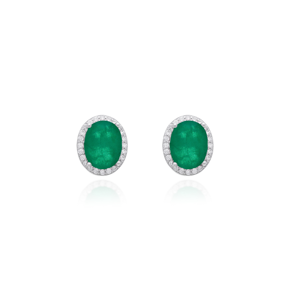 Brinco de prata 925 com banho de ródio e cristal esmeralda fusion e micro zircônias cravejadas na cor branco (cristal).