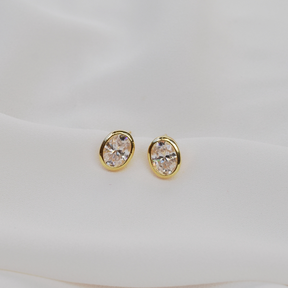 Brinco oval moissanite ouro prata 925