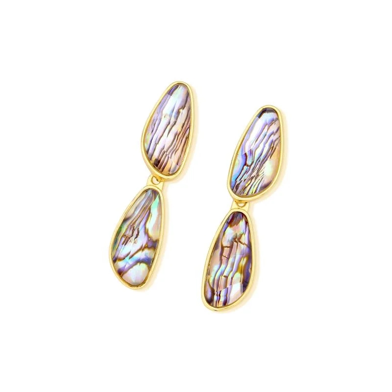 Brinco banho de ouro com design triangular e apllicação de pedra natural abalone.