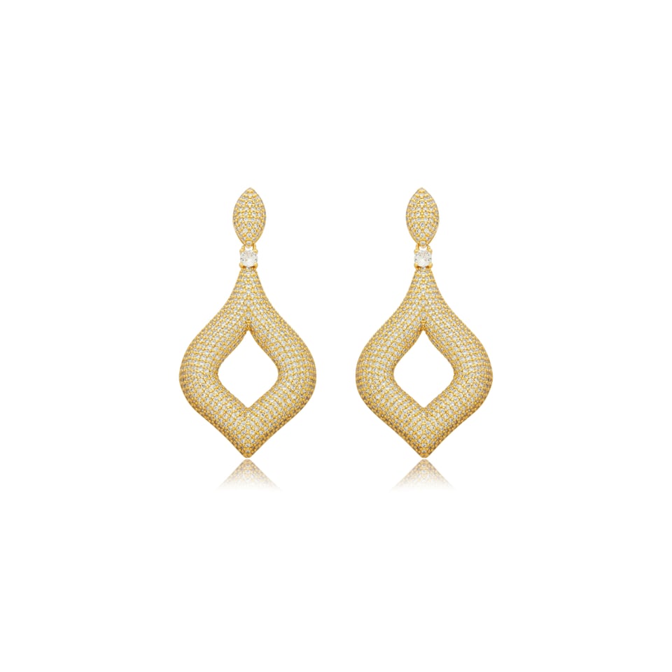 Brinco banho de ouro com cravação de micro zircônias na cor branco (cristal).