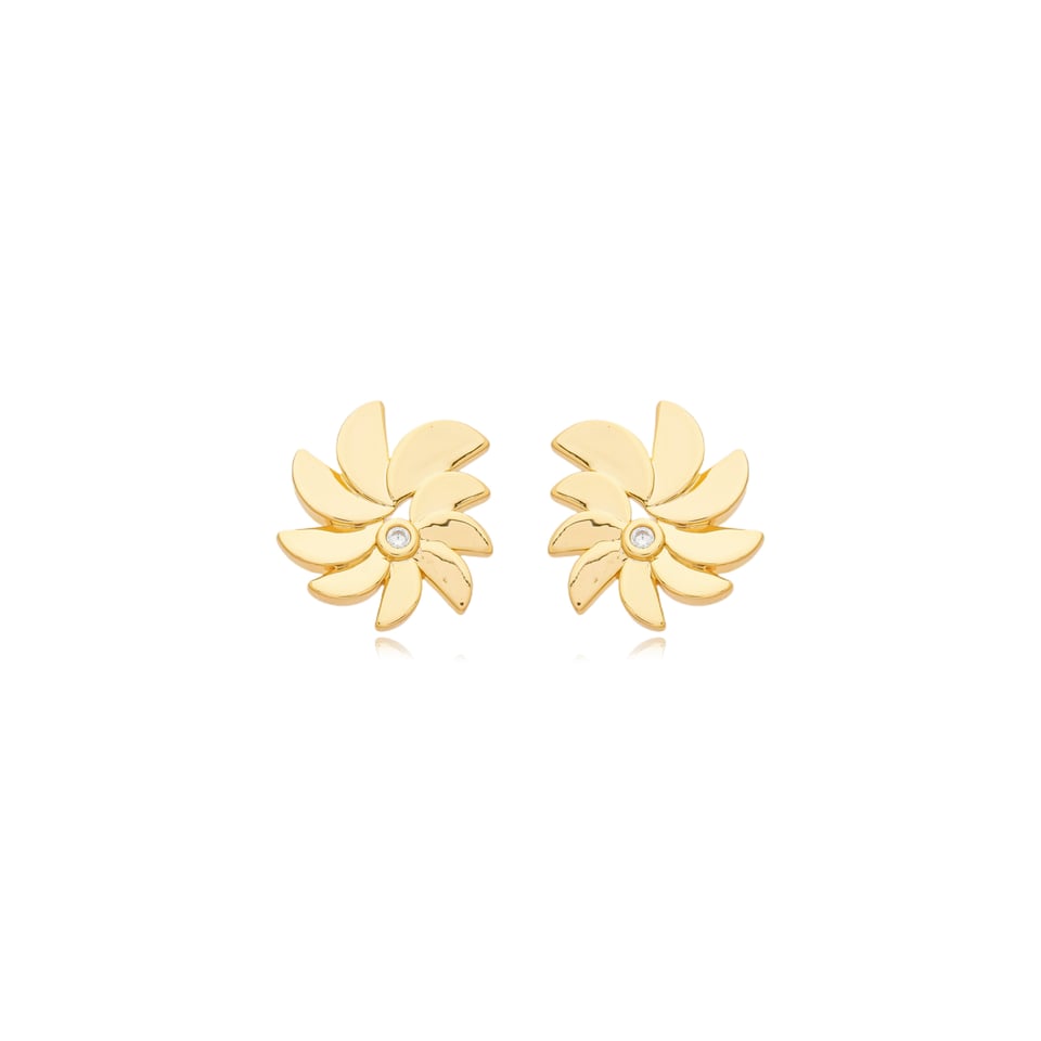 Brinco banho de ouro com aplicação de cristal na cor branco (cristal).