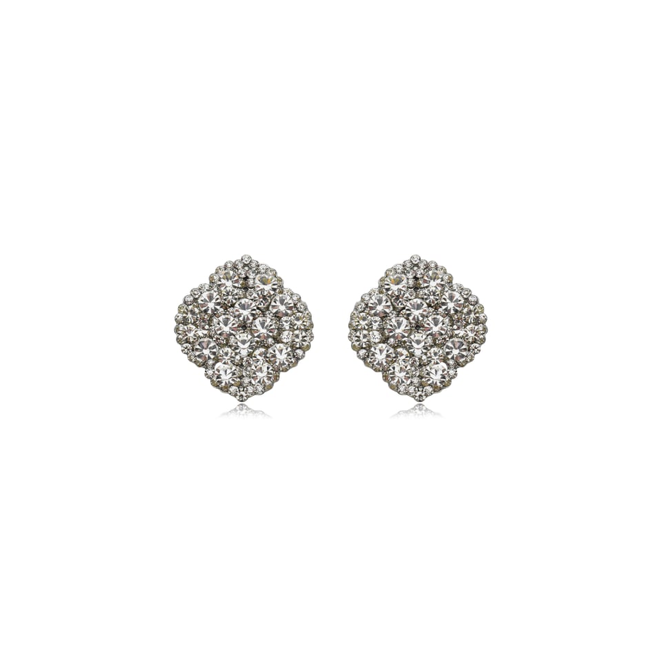 Brinco banho prateado com aplicação de cristais na cor branco (cristal).