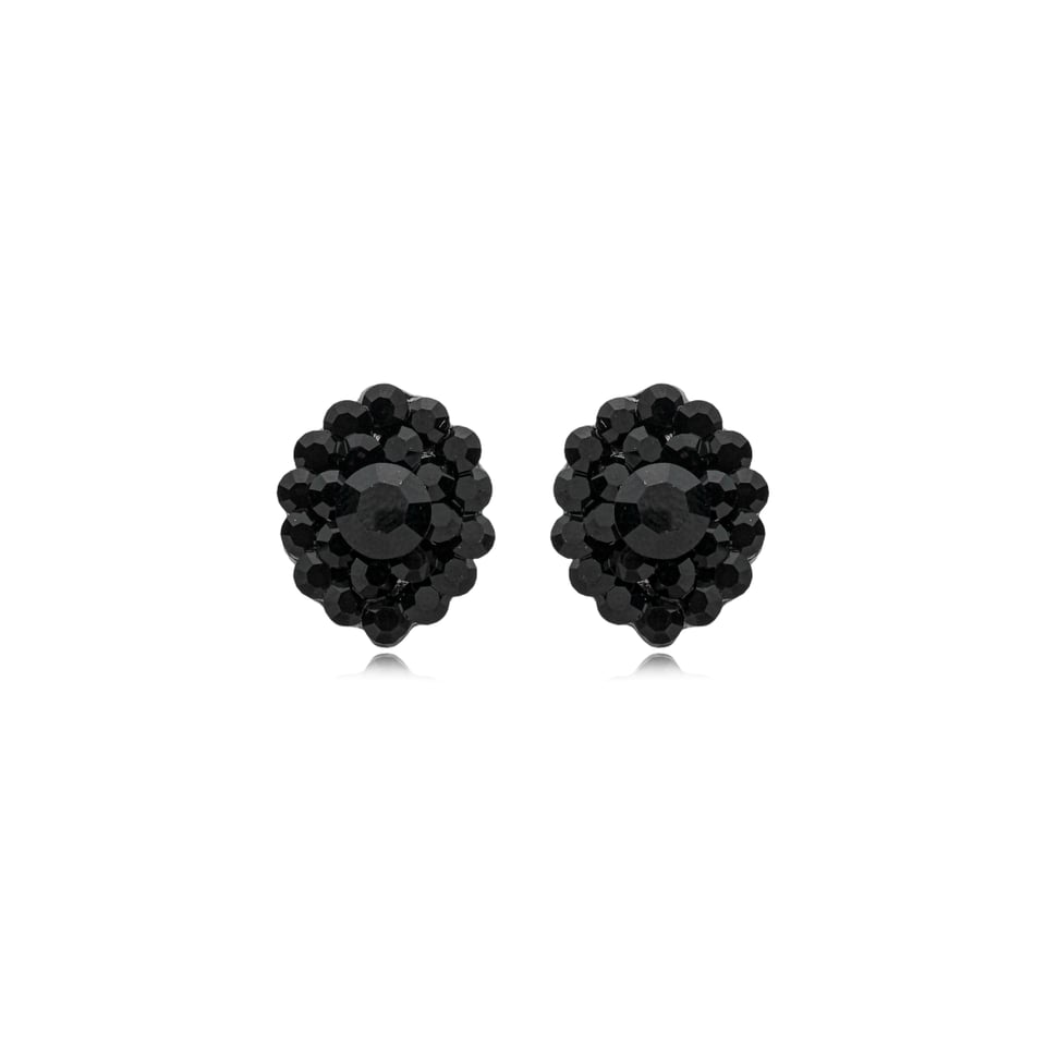 Brinco banho grafite com aplicação de cristais na cor preto.