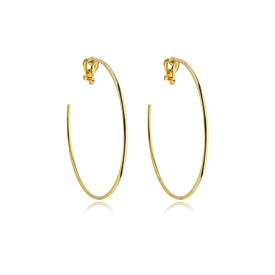 Brinco argola de pressão banho de ouro no metal liso fino.