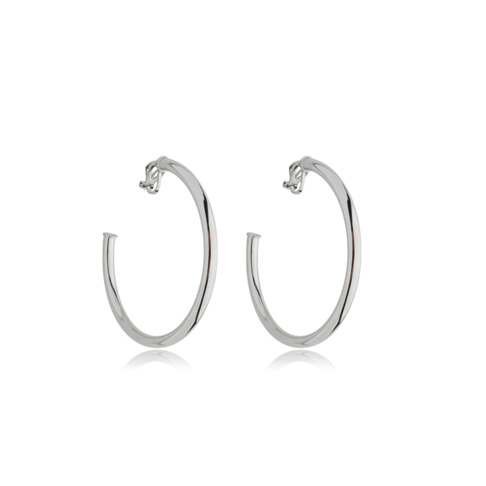 Brinco argola de pressão banho de ródio no metal tubo liso polido.