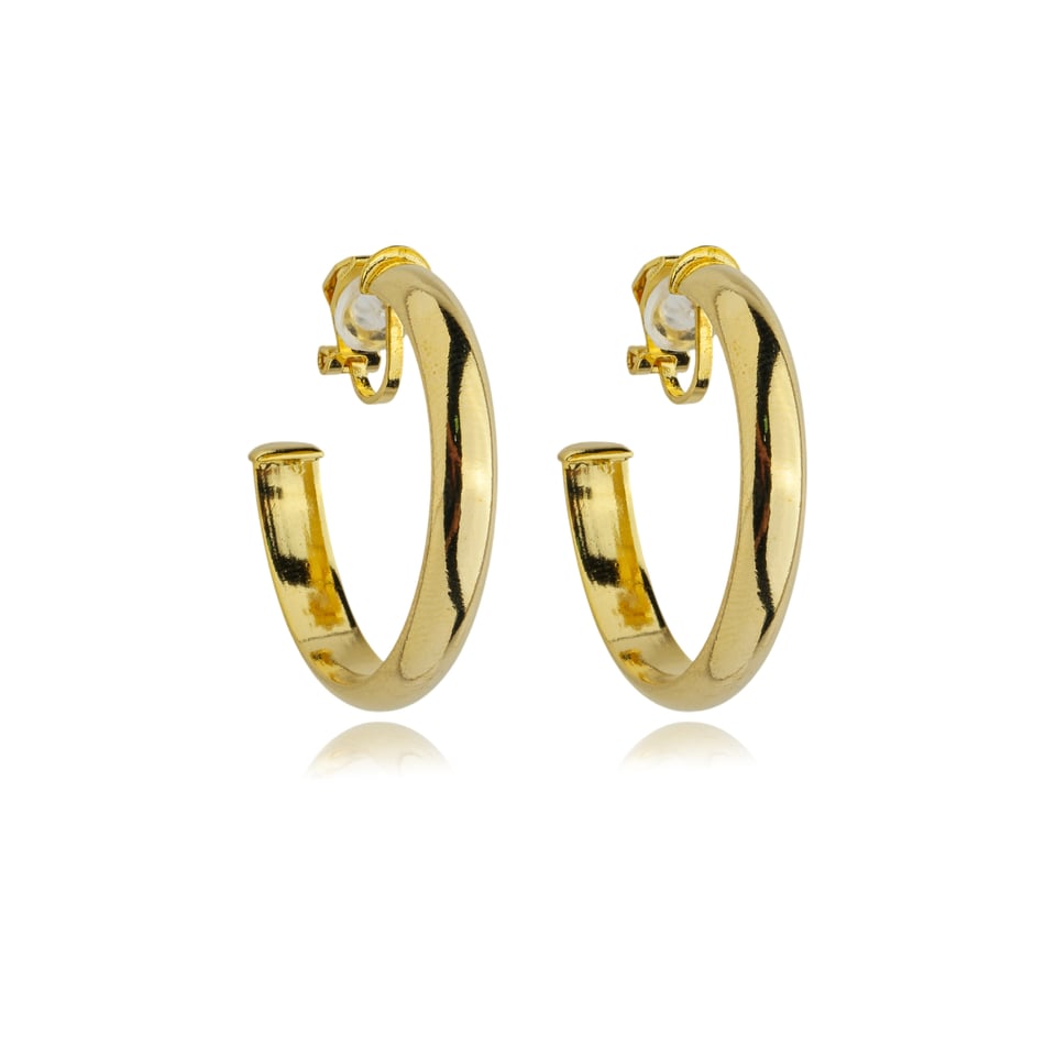 Brinco argola de pressão banho de ouro no metal liso.