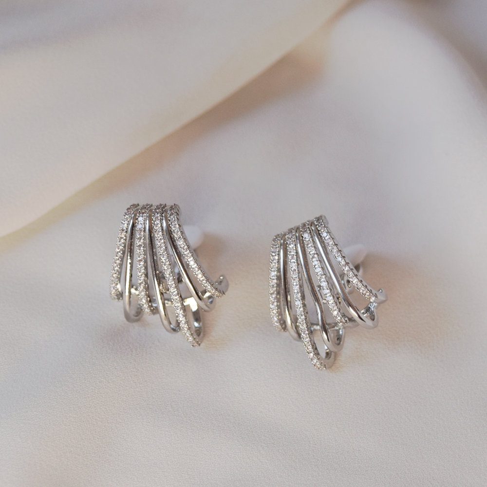 Brinco pressão banho de ródio com 7 aros, sendo 3 lisos e 4 com micro zircônias cravejadas na cor branco (cristal).