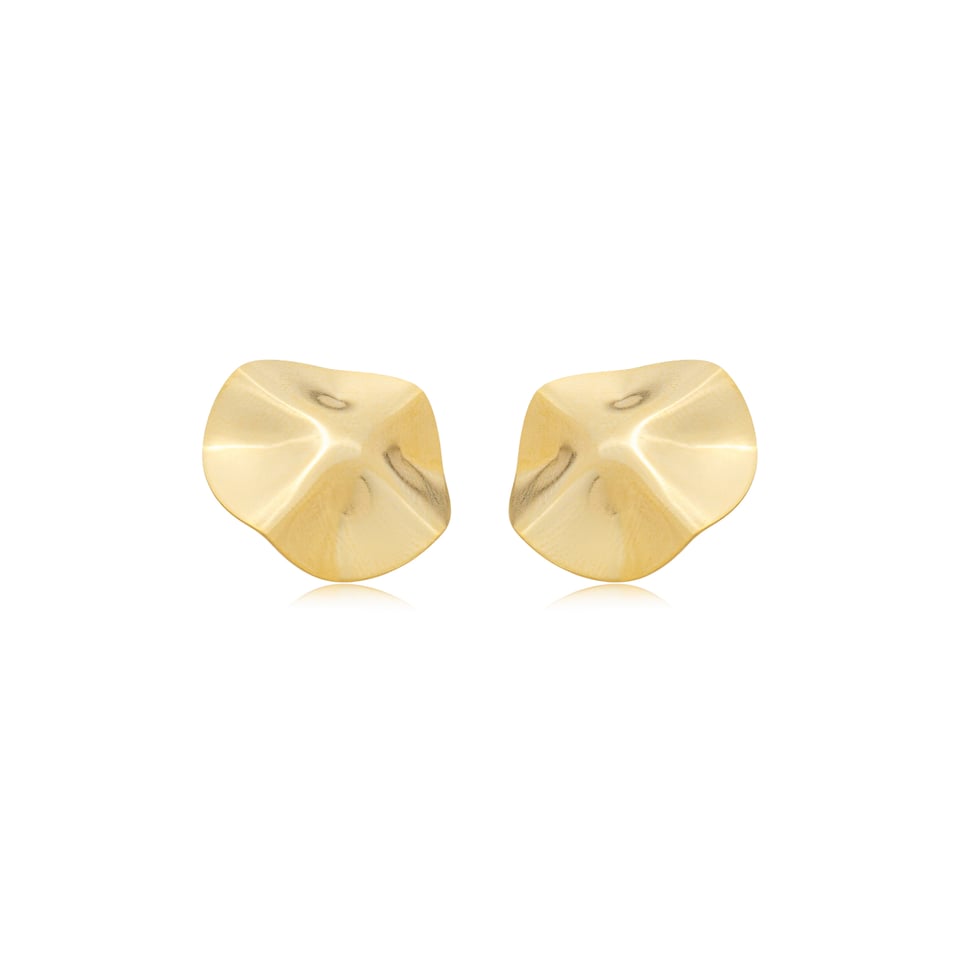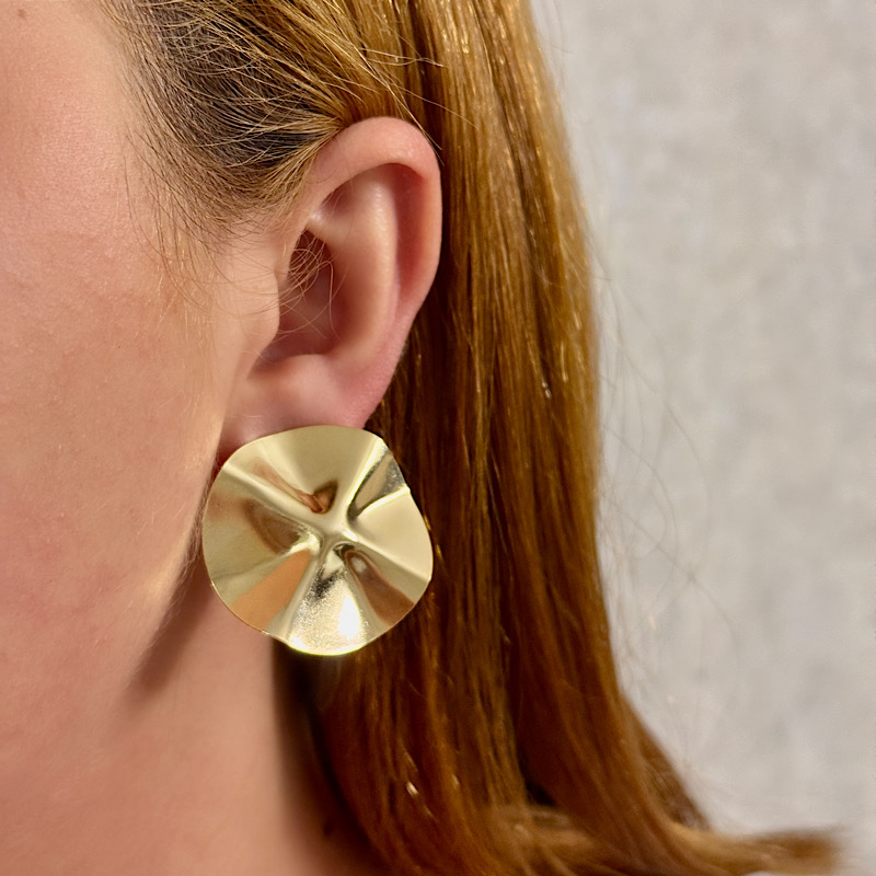 Brinco de pressão banhado a ouro com design redondo e acabamento com efeito amassado, que adiciona textura e personalidade à peça. O fecho de pressão garante conforto e praticidade, perfeito para quem prefere não utilizar brincos com furo.