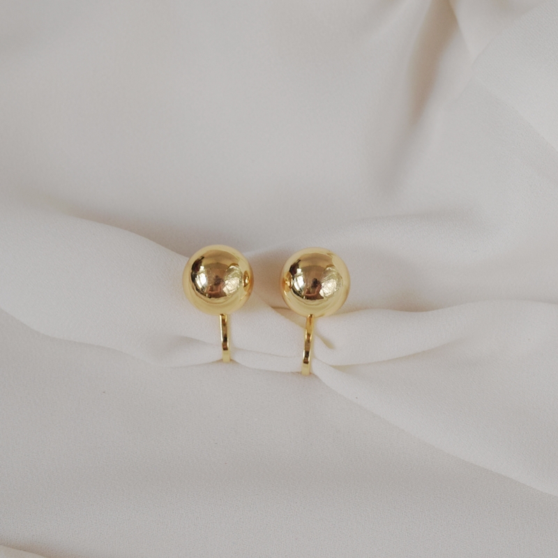 Brinco de pressão com banho de ouro e esfera média em metal liso polido, uma peça versátil que equilibra delicadeza e presença. O acabamento espelhado valoriza o brilho da semijoia, trazendo sofisticação na medida certa. Confortável e prático, dispensa furo na orelha, sendo ideal para o uso diário ou para complementar produções elegantes com um toque moderno e atemporal.