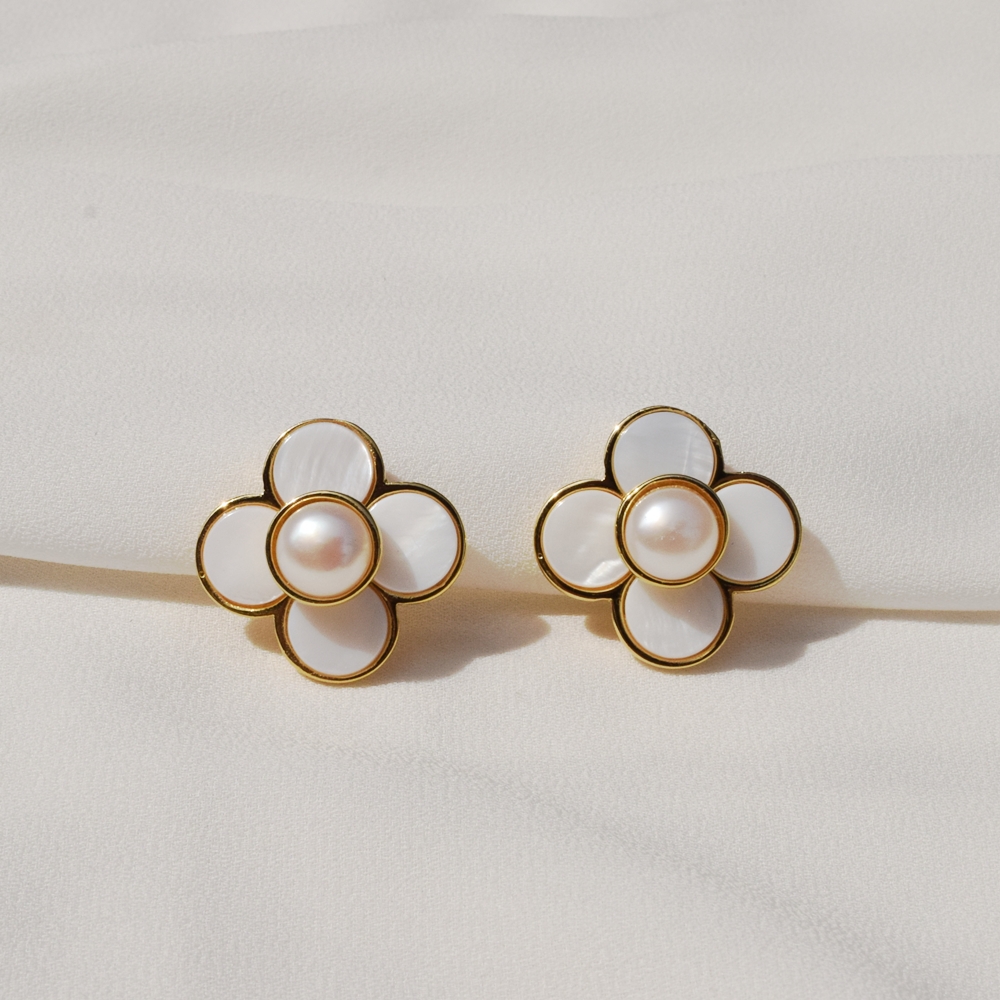 Delicado e elegante, o Brinco de Pressão em formato de flor traz o charme da resina que imita a madrepérola e aplicação de uma pérola central, conferindo um brilho suave e sofisticado.