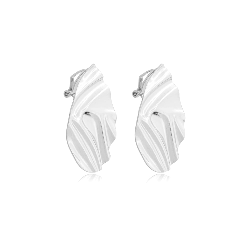 Brinco pressão banho de ródio com design de gota no metal com efeito amassado.