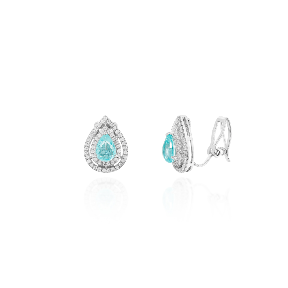 Brinco pressão de prata 925 com banho de ródio e cristal esmeralda colombiana e micro zircônias cravejadas na cor branco (cristal).