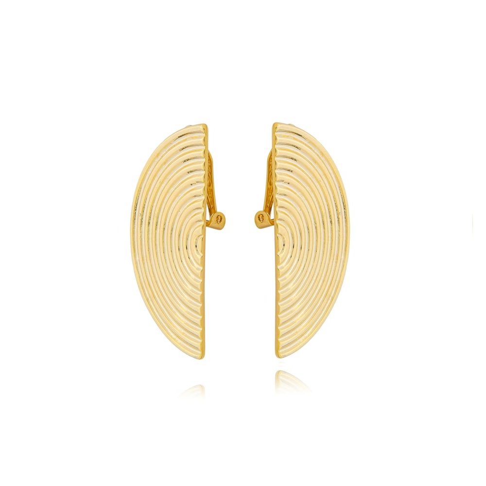 O Brinco de Pressão Meia Lua é uma semijoia moderna, produzida em metal com banho de ouro e design geométrico em formato de meia lua. Seu acabamento texturizado em linhas concêntricas cria um visual sofisticado, leve e elegante, ideal para quem busca um acessório diferente e marcante.