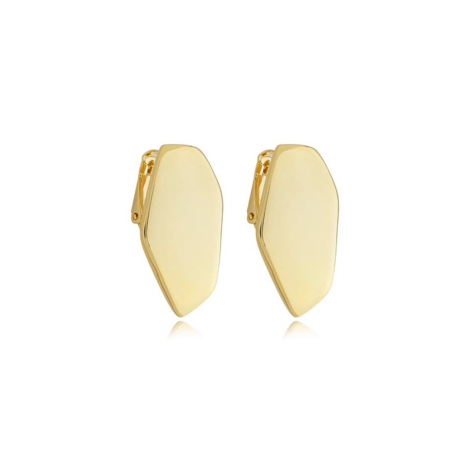 Brinco pressão banho de ouro com design orgânico no metal liso polido.